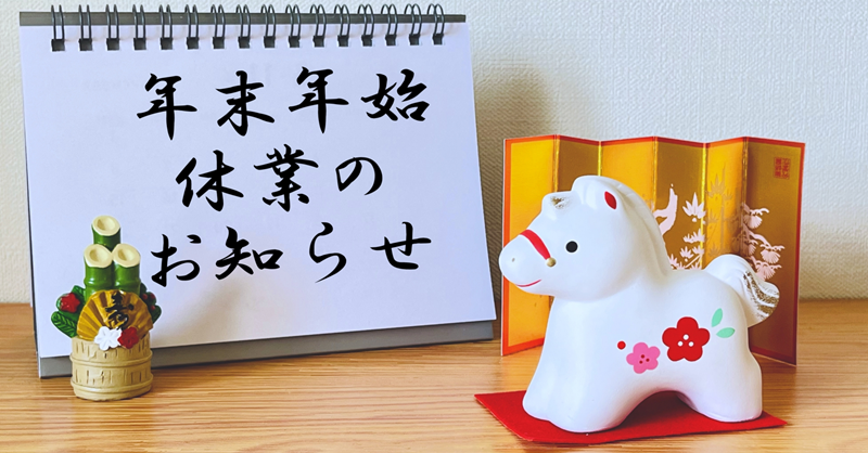Webサイトからのお問い合わせにつきましては12月30日(火)・31日(水)・1月1日(木)・2日(金)・3日(土)・4日(日)が休業のため、5日(月)以降にお願いします。順次対応させていただきます。