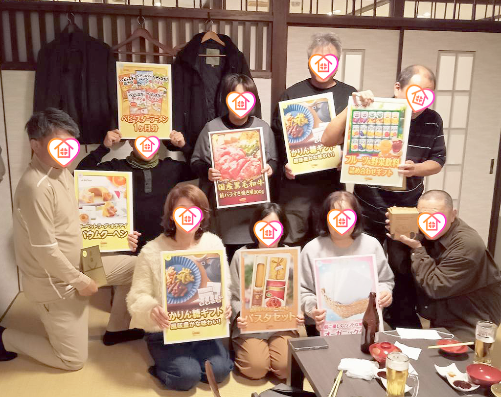 まごころ/花みずきでは毎年忘年会を行っております。まごころは24時間介護のため今年も2回に分けて忘年会を行いました。