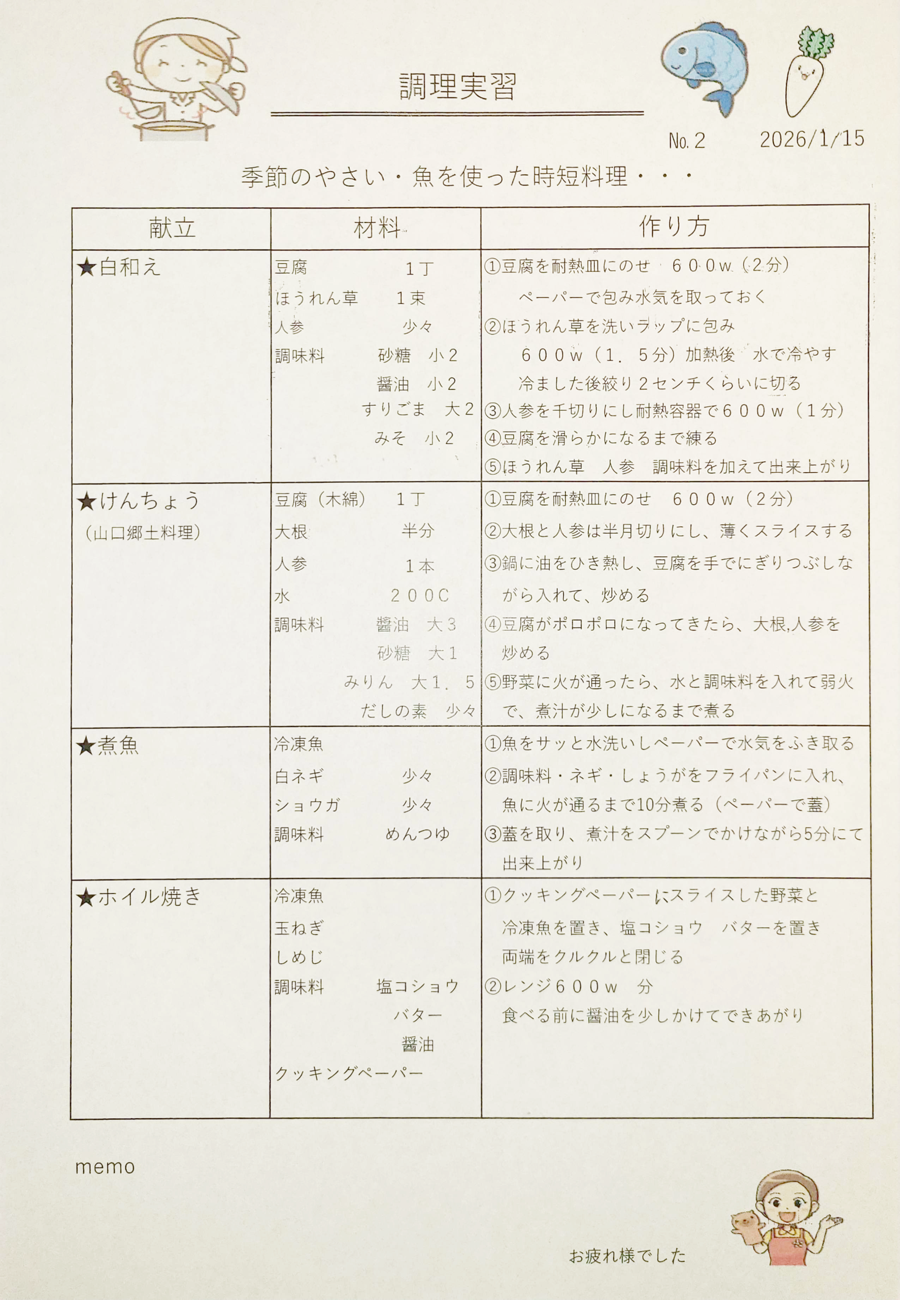 今回のテーマは『季節の野菜・魚を使った時短料理』です。